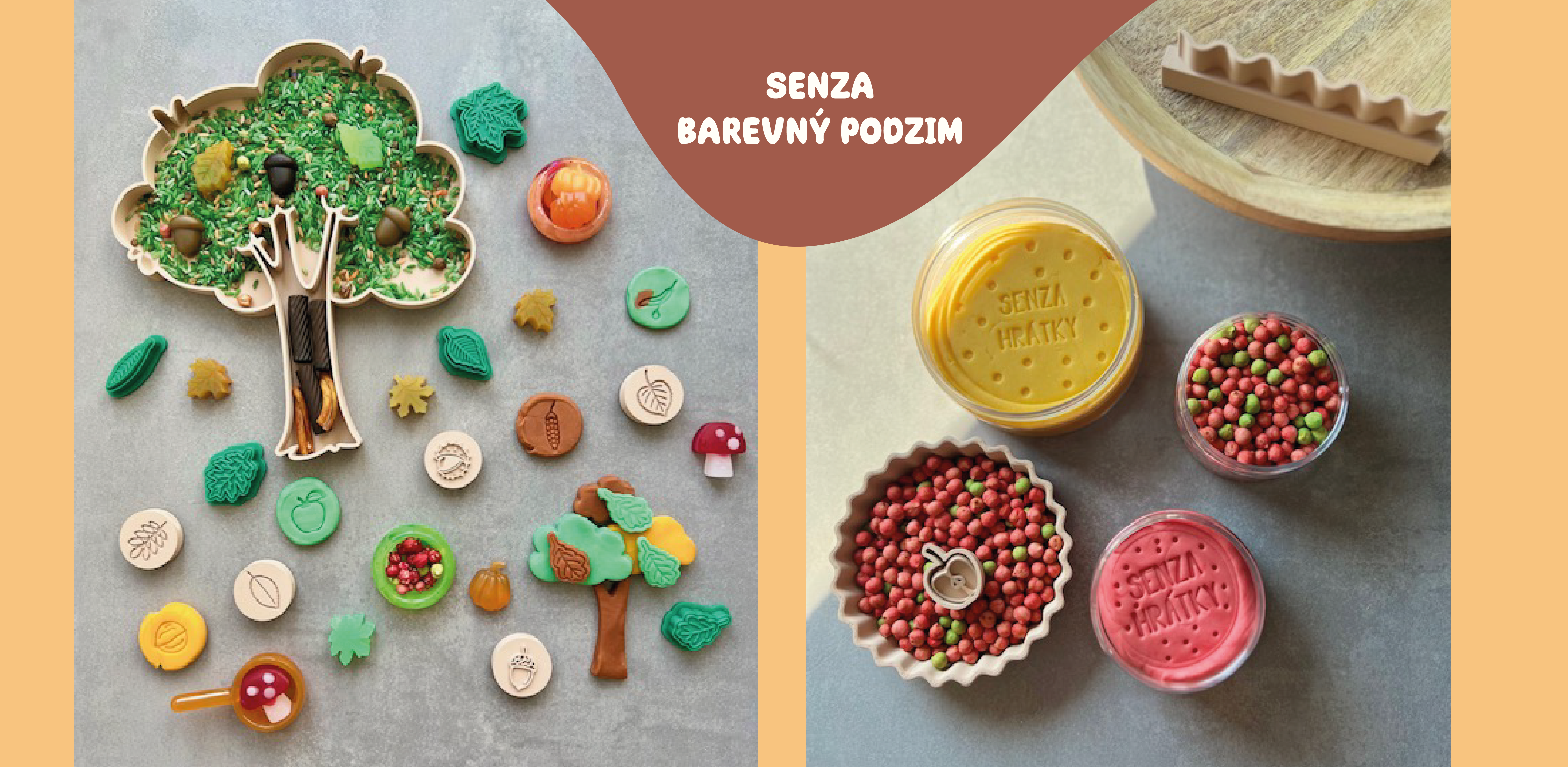 Smyslový tác na vysypávání, třídění aj. spolu s pusinkou, díky které můžou děti veverku krmit.