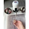 Pokud vyberete variantu s dávkovačem, obdržíte dávkovač, který je na obrázku. Nabíjí se přes USB kabel , který je součástí balení (adaptér není v balení), hadičku, kterou podle potřeby zastřihnete (záleží, zda budete desku využívat na mělkou nebo hlubokou krabici). Dávkovač vydává zvuk, jedná se o malé čerpadýlko. Po cca 1 minutě se samo vypne. Vyobrazené mističky a trychtýř nejsou součástí balení.