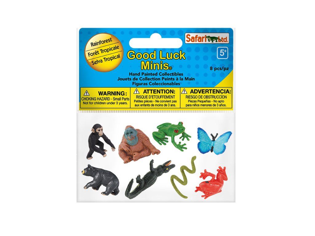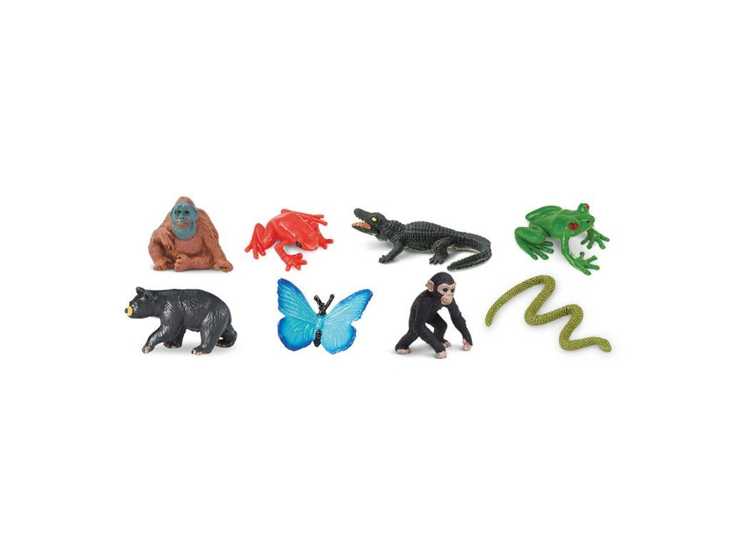 Sada 8 ručně malovaných figurek s motivem vybraných zvířat z deštného pralesa.