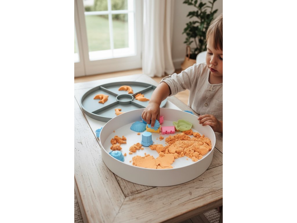 🖐️ Podporuje smyslový rozvoj a fantazii – vhodné pro kinetický písek, vodu, rýži, malé předměty, figurky a další materiály.