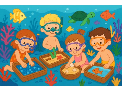 Vydáme se do světa moří a oceánu, kde na děti bude čekat spousta zvířátek, mušliček a korálů.