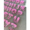 Velikost písmena je 3,8 cm, tloušťka 6 mm, šířka je u písmenek různá.