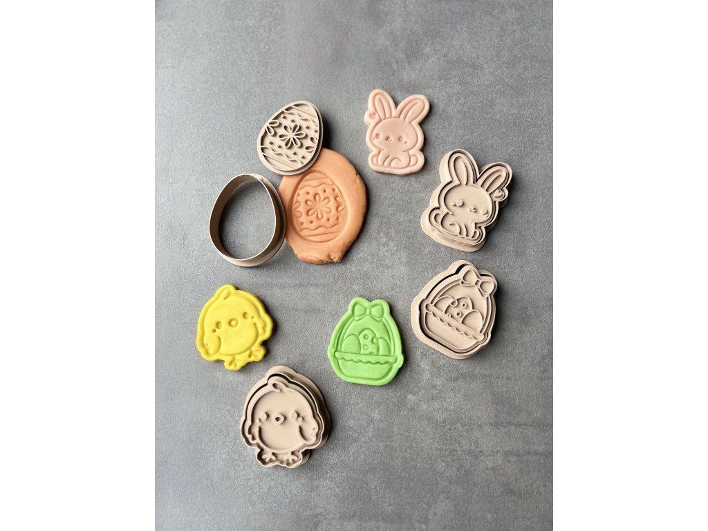 Rozměr: kuřátko 6,2x6,7x1,28 cm, zajíček 5,3x7x1,28 cm, vajíčko 5,6x6,7x1,28 cm, košík 5,8x6,5x1,28 cm
