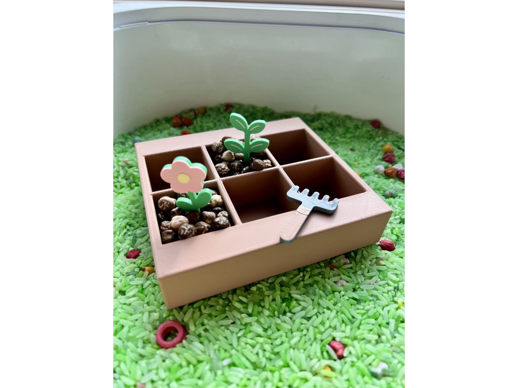 Kvalitní a pevný záhon rozdělený na 6 samostatných políček je ideální základ pro smyslové hraní i tematické aktivity. Děti mohou sázet, přesazovat, třídit, počítat nebo vytvářet vlastní mini zahrádku.