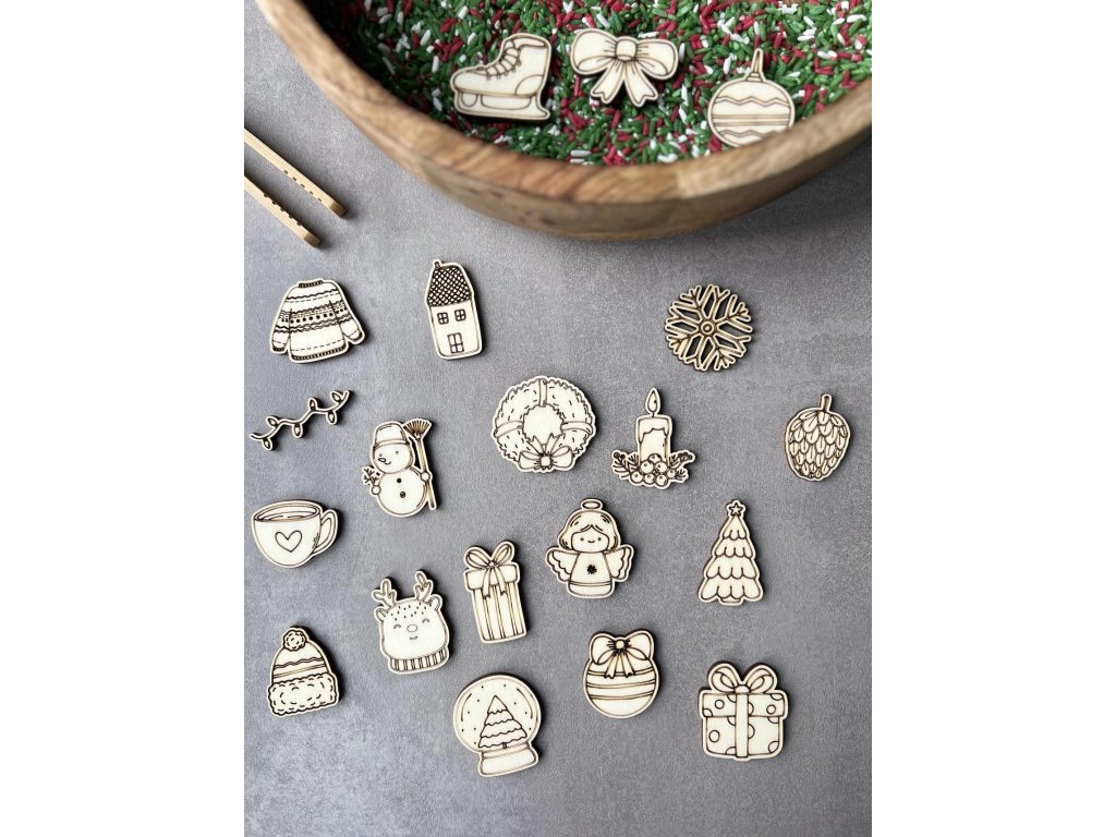 V sadě je 20 kusů výřezů s vánočními/zimními motivy, které lze využít k tácku na počítání, ale můžete je samozřejmě použít i jinak. My je dětem schováváme do rýže a cizrny a třídí je do mističek, lze je použít i na vytváření vlastního vánočního/zimního světa.